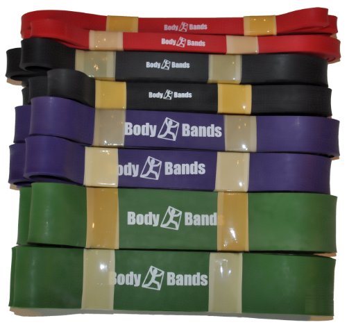 Strength Training: Resistance Training, Body Weight Exercises, Isometric Training, P90X, Weight Training.Choose the bands the professionals use! Personal Trainers, Instructors and Coaches!.Resistance: 1/2" - 5 to 50 lbs | 3/4" - 10 to 60 lbs | 1 1/8" - 25 to 80 lbs | 1 3/4" - 50 to 120lbs | 2 1/2" - 60 to a hundred and fifty lbs | 3 1/4" - 70 to a hundred seventy five lbs | 4" - eighty to 200 lbs.Kit Includes: Two each and every of 1/2", 3/4", 1 1/8", & 1 3/4" Bands, and Bag.Flexibility Training: Stretching, Pilates, Yoga, Aerobics. The Body-Bands Combo Set four resistance training device gives you a full vary of Fitness bands. This coaching machine is designed for individuals who need to get into great shape. It provides a excessive range of resistance bands with a view to provide you with gentle bands for warm ups and the evolved bands for a challenging exercise. This band set can additionally be great for many who use Pilates, Yoga, P90X or other fitness professionalgrams. Body-Bands are an implausible versatile software for adding resistance to stretching, lifting, and body weight coaching workouts. All bands are manufactured from one hundred percent natural latex through a steady layering professionalcess to ensure lengthy lifestyles. All bands are 41" in size and 3/8" thick. Seven different widths professionalvide a variety of resistance stages: 1/2", 3/4", 1 1/8", 1 three/4", 2 1/2", 3 1/4", and four" Bands with Resistance from 5 to 200 Pounds. We additionally suggest that you just use gloves together with your bands. If you have not any, we've a excellent set designed for band workouts.. ... Read more 41" Resistance Loop Double Band Combo Set 4 | Two Each of 1/2", 3/4", 1 1/8", and 1 3/4" Exercise Bands