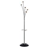 BestSeller Alba PMFEST Festival Coat Tree with Umbrella Holder, Five Knobs, Metal/Wood, Gray/Mahogany